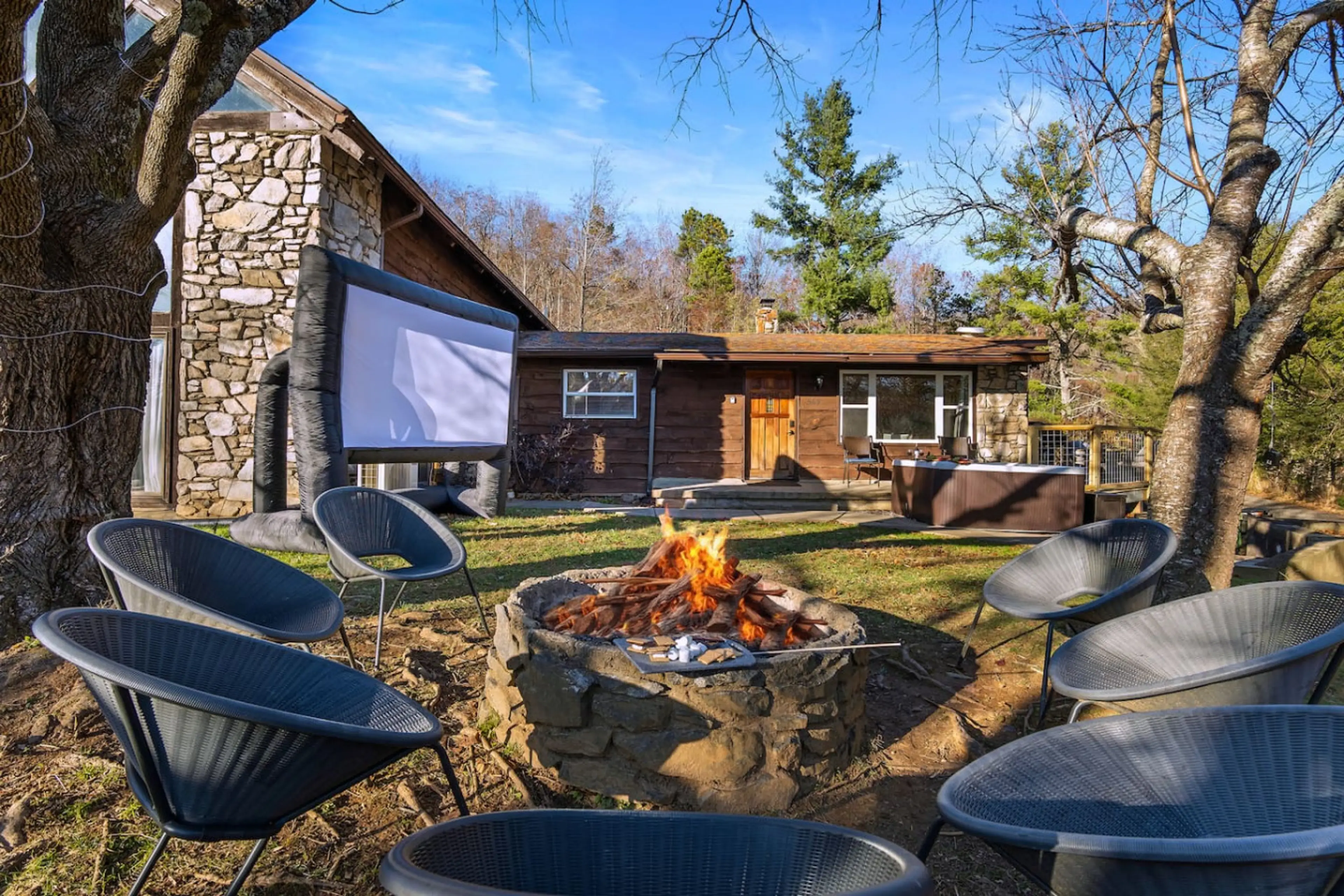 Cool Lodge sleeps 8 sauna, hot tub, firepit