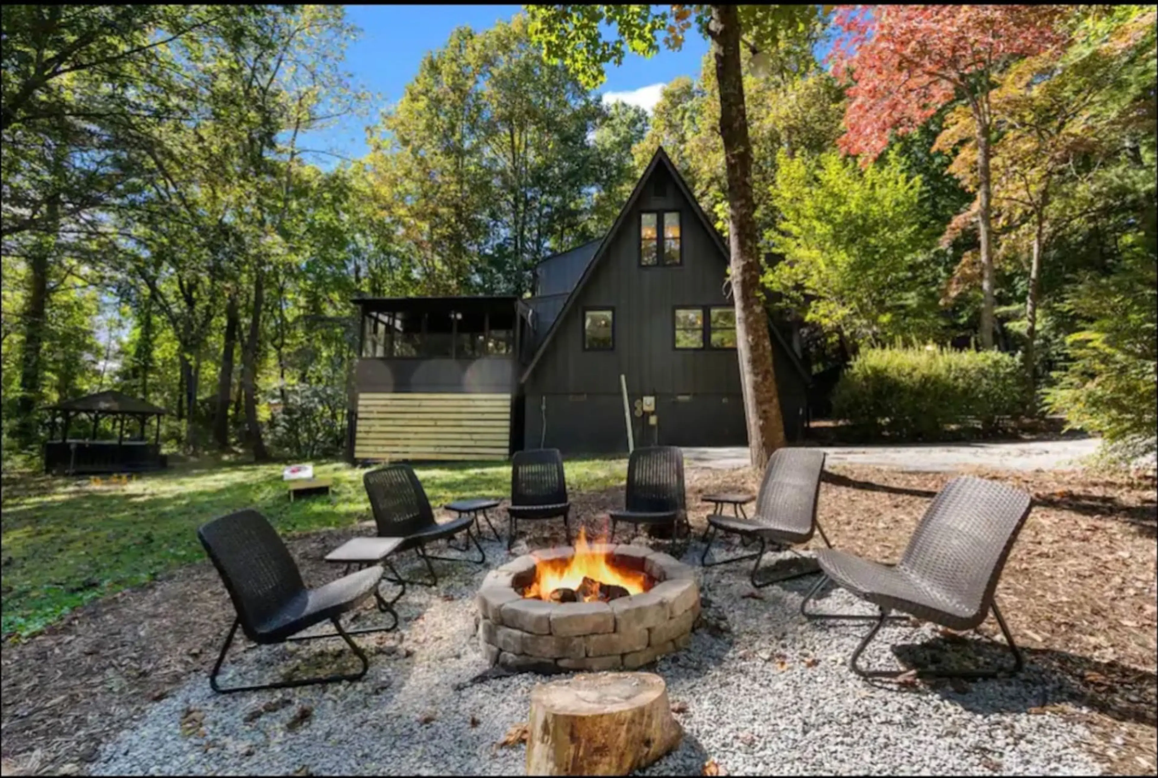 A Frame Hot Tub, firepit, pet friendly fenced yard